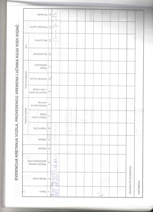 U navedenom periodu od 11.05.2023.- 24.05.2023. god. nije izdat nijedan putni nalog za potrebe službenog vozila u vlasništvu JP Sportski centar Nikšić.