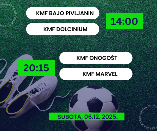 CRNOGORSKA FUTSAL LIGA, Subota 06.12.2025. 3. decembra 2025. Posted in:KoncertSportski događaj See more Prev:KK TREBJESA – ŽKK PODGORICA, Srijeda 03.12.2025. Back: All Works Next:OK VOLLEY STAR – OK TEMPO, Nedjelja 07.12.2025.