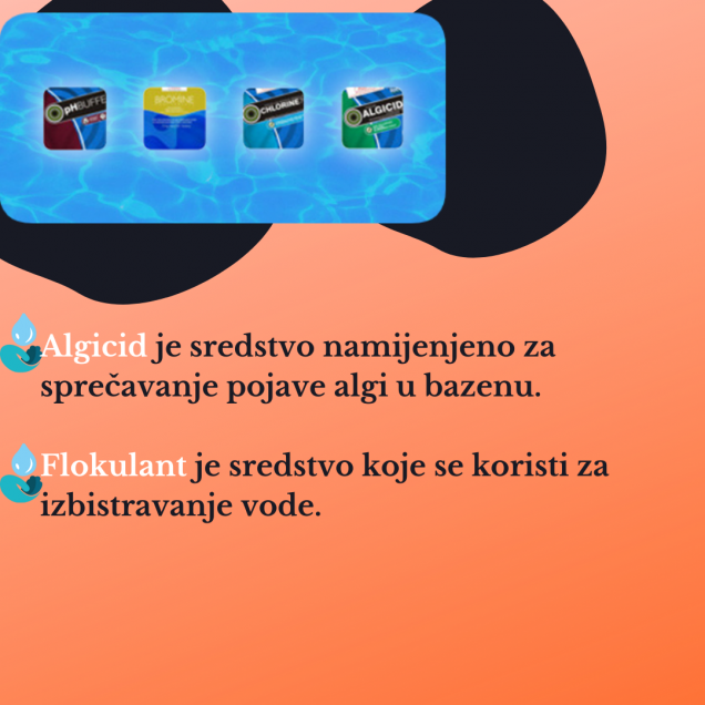 👉Ipak, da bi voda u bazenu bila adekvatna za upotrebu, potrebno je izvršiti adekvatan tretman vode u bazenima. Hemija za bazene je u tom slučaju, idealno rješenje za svakodnevno održavanje kako bi voda ostala bistra i čista, bez štetnih supstanci, bakterija, virusa, algi i drugih štetnih elemenata za plivače.🏊♂️🏊♀️🏊