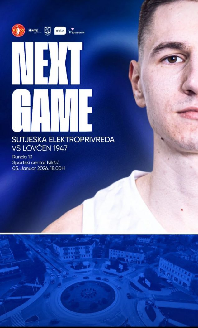 KK SUTJESKA – KK LOVĆEN 1947, Ponedjeljak 05.01.2026. 3. januara 2026. Posted in:KoncertSportski događaj See more Prev:ŽRK LEVALEA – ŽRK NIKŠIĆ, Srijeda 24.12.2025. Back: All Works