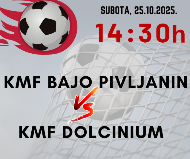 KMF BAJO PIVLJANIN – KMF DOLCINIUM, Subota 25.10.2025. 21. oktobra 2025. Posted in:KoncertSportski događaj See more Prev:OK TEMPO – OK TOP VOLLEY, Četvrtak 23.10.2025. Back: All Works Next:KMF ONOGOŠT – KMF CATTARO, Subota 25.10.2025.