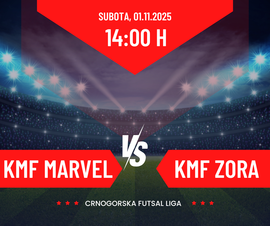 KMF MARVEL – KMF ZORA, Subota 01.11.2025. 29. oktobra 2025. Posted in:KoncertSportski događaj See more Prev:KK SUTJESKA – KK PODGORICA BEMAX, Ponedjeljak 27.10.2025. Back: All Works Next:ŽKK TREBJESA – ŽKK SEA STARS, Subota 01.11.2025.