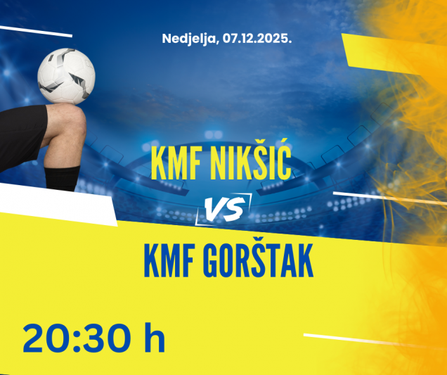 KMF NIKŠIĆ – KMF GORŠTAK, Nedjelja 07.12.2025. 4. decembra 2025. Posted in:KoncertSportski događaj See more Prev:OK VOLLEY STAR – OK TEMPO, Nedjelja 07.12.2025. Back: All Works Next:KK Sutjeska – KK Zlatibor Mozzart, Utorak 09.12.2025.