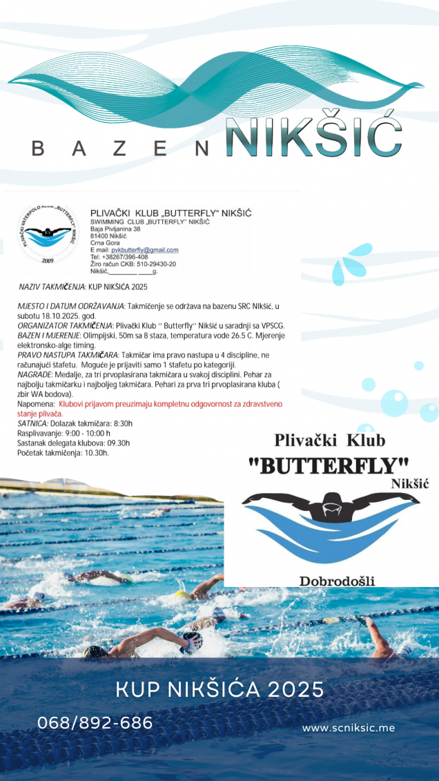 3. MEĐUNARODNO PLIVAČKO TAKMIČENJE – KUP NIKŠIĆA 2025, Subota 18.10.2025.