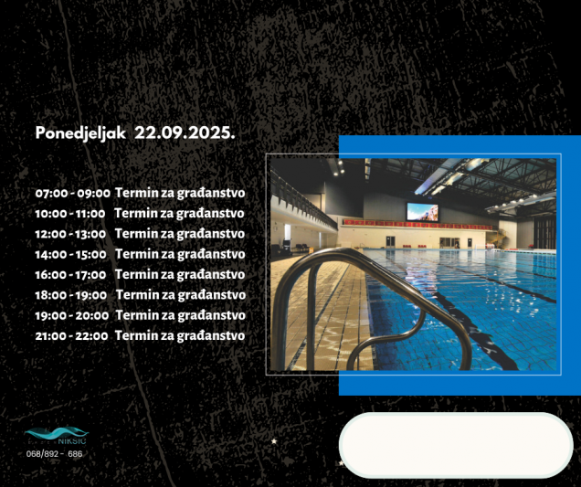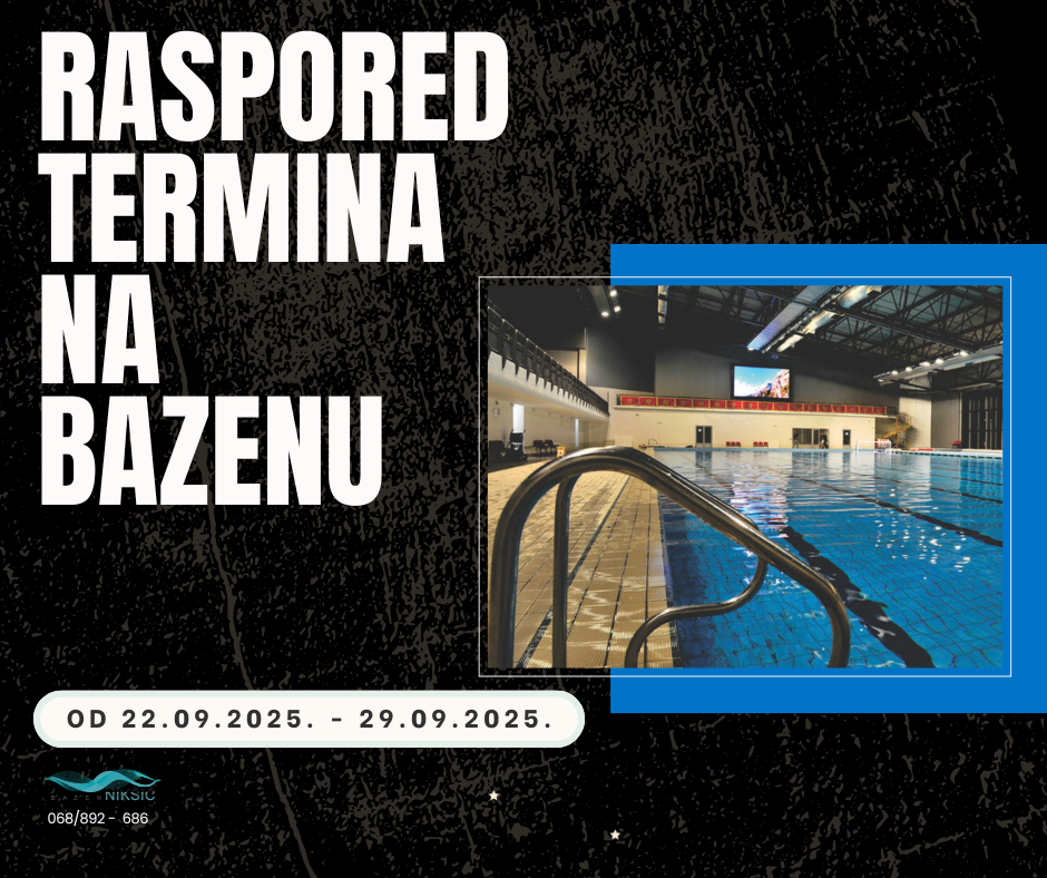 RASPORED TERMINA NA BAZENU OD 22.09.2025. – 29.09.2025. 20. septembra 2025. by Sportski Centar Posted in:Obavještenja See more Prev:BAZEN POČINJE SA RADOM 22.09.2025 Back: Svi članci Next:RASPORED TERMINA NA BAZENU OD 29.09.2025. – 06.10.2025.